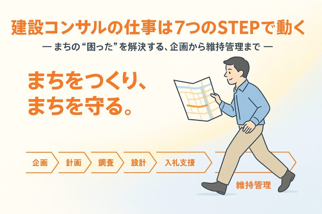 建設コンサルの仕事は、企画〜維持管理までの7ステップ。